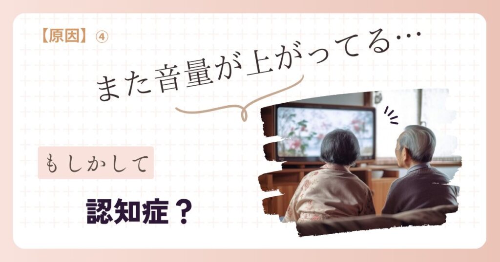 ※この記事にはPRが含まれます 「最近、親のテレビの音がやけに大きい…」 そう感じたとき、 ふと頭をよぎるのが、 「もしかして認知症?」という不安 ただ、 ・年齢的な変化なのか・何か別の原因なのか 判断が難しい問題でもあります まず知っておきたいこ... -